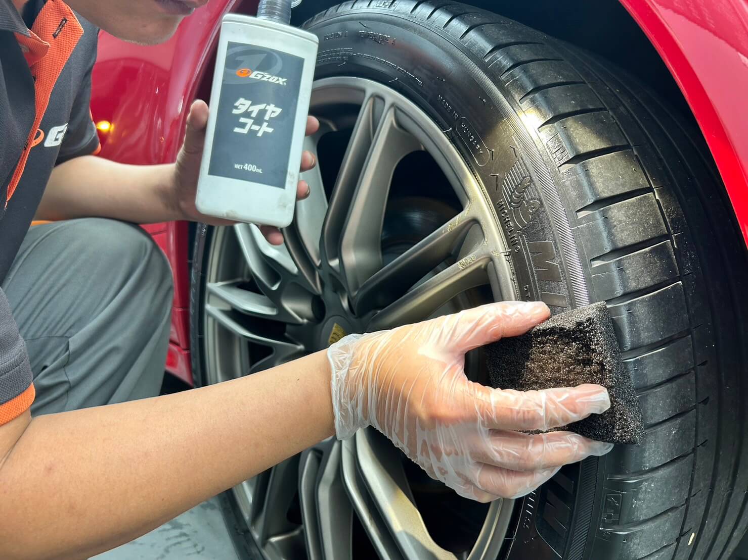 G’ZOX輪胎鍍膜劑,具有良好的增艷效果,乾燥後的光澤,如同新車般黝黑,維持美麗外觀,延緩胎壁劣化。
